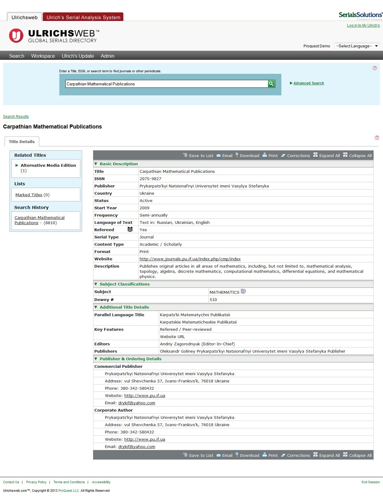 The Carpathian Mathematical Publications is abstracted and/or indexed in: